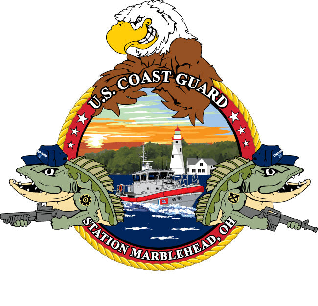 We offer full graphic services here at The USCG Store, Take an idea, photographs, sketch or piece together a few ideas into one! We will then convert all your artwork into what is called VECTOR artwork. This can be edited, resized, used for ANY art printing project! There can be a lot of time in "tracing" objects like boats, light houses and or area specific landmarks so each project is quoted based on complexity.