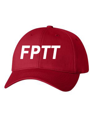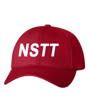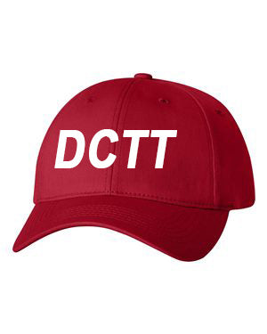 Our standard Training Team Red Hats with white thread & Velcro adjustable back.