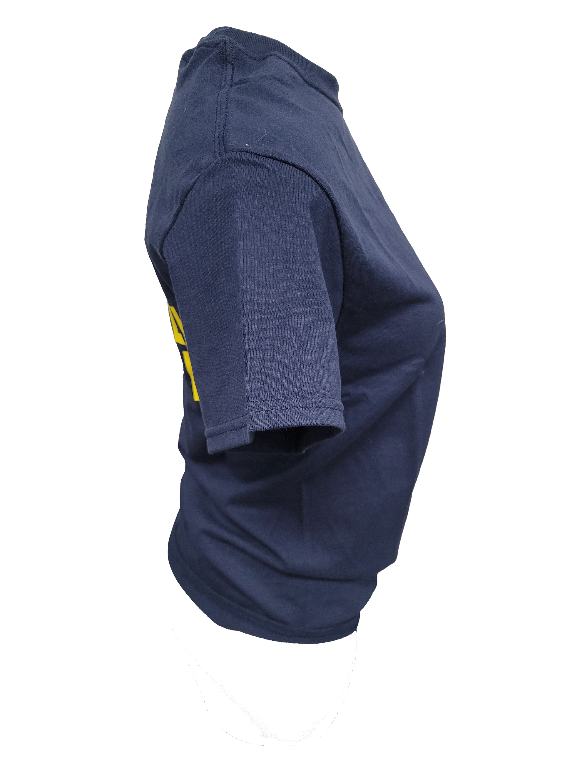 Gildan 50/50 blend, Classic Fit, Classic Width, Ribbed Collar, Tear Away Label.